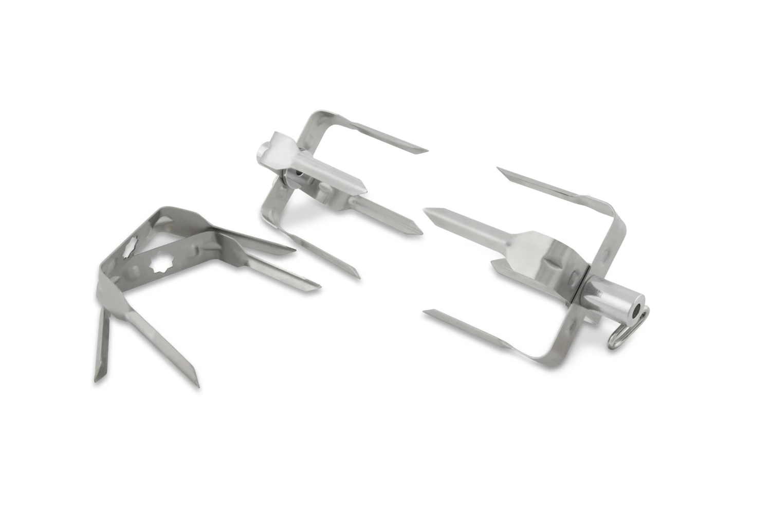 Dieses Zusatzset Drehspießforken aus Edelstahl passt ideal auf Ihren Broil King Grillspieß. Die Form dieser Forken sorgt für den idealen Halt Ihres Grillgutes.