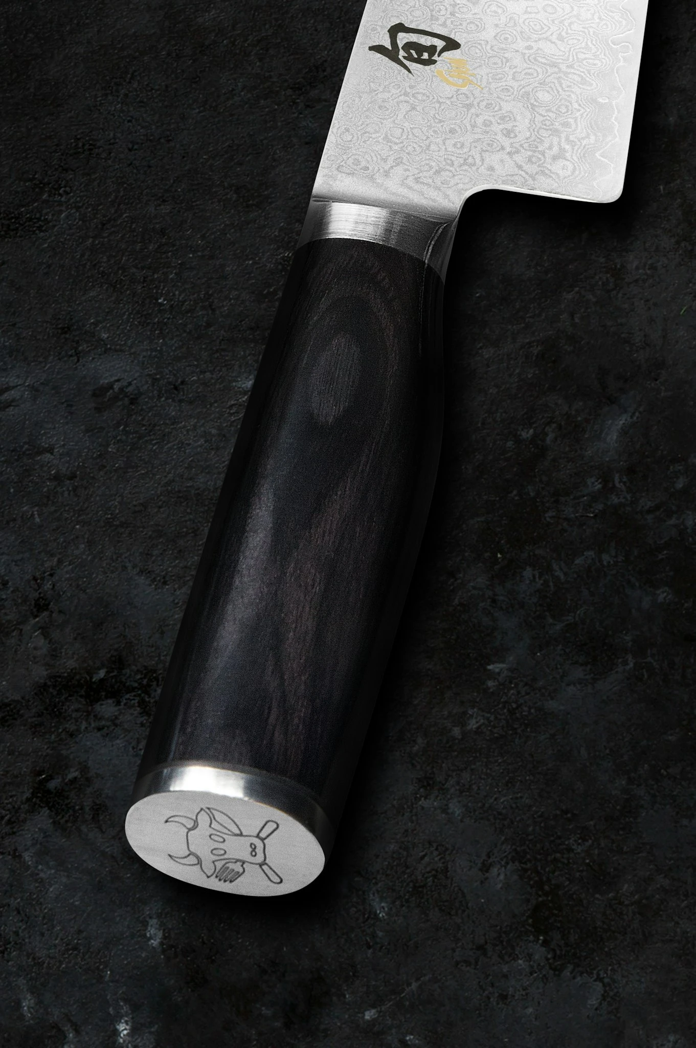 Die Shun Premier Tim Mälzer Minamo Serie reiht sich als besonders elegante und eigenständige Erweiterung in die Premiumklasse der Shun Premier Messerserie ein. Hier werden das Japanische und das Europäische kunstvoll miteinander verknüpft. Tim Mälzer hatte die Idee, eine Kombination aus dem typisch japanischen Santokumesser und dem klassisch europäischen Kochmesser zu entwickeln. Diese Fusion galt als Basis für die drei Klingenformen. Die Serie ist von einer klaren Formensprache bestimmt. Ein schwarzer Griff in Kombination mit der eigens designten Klinge, die gleichmäßig mit einer feinen Damaszenermaserung durchzogen wird, lassen jedes Messer wie ein Einzelstück wirken.
