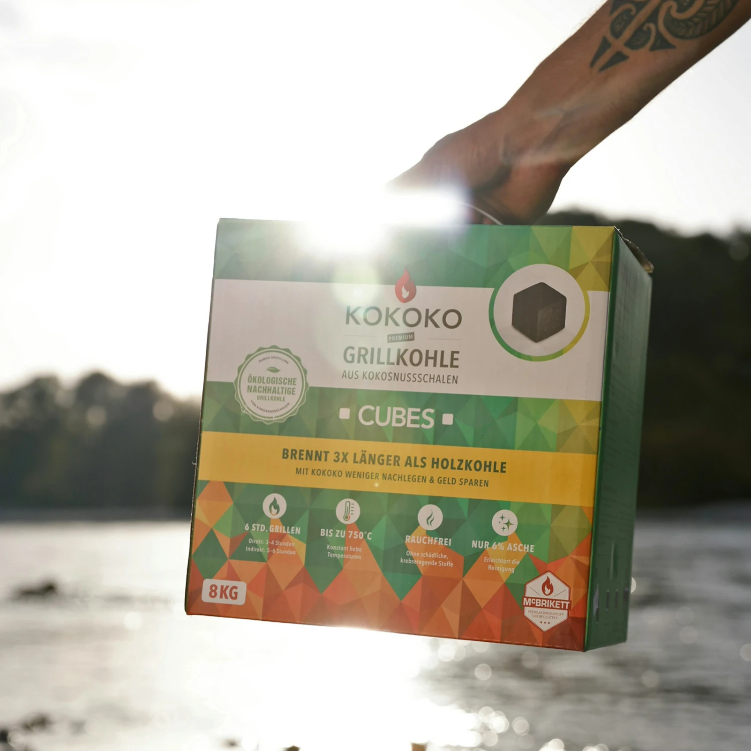 Die McBrikett KOKOKO CUBES sind auf Grund Ihrer Kompaktheit der ideale Begleiter für unterwegs, aber auch platzsparend für zuhause. Ebenso wie die Kokoko Eggs heben sie sich, durch eine Brenndauer von 3 – 6 Stunden, von gewöhnlicher Holzkohle ab.