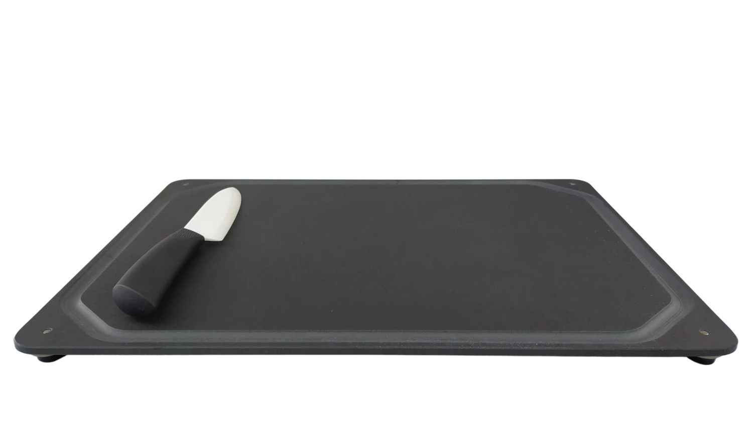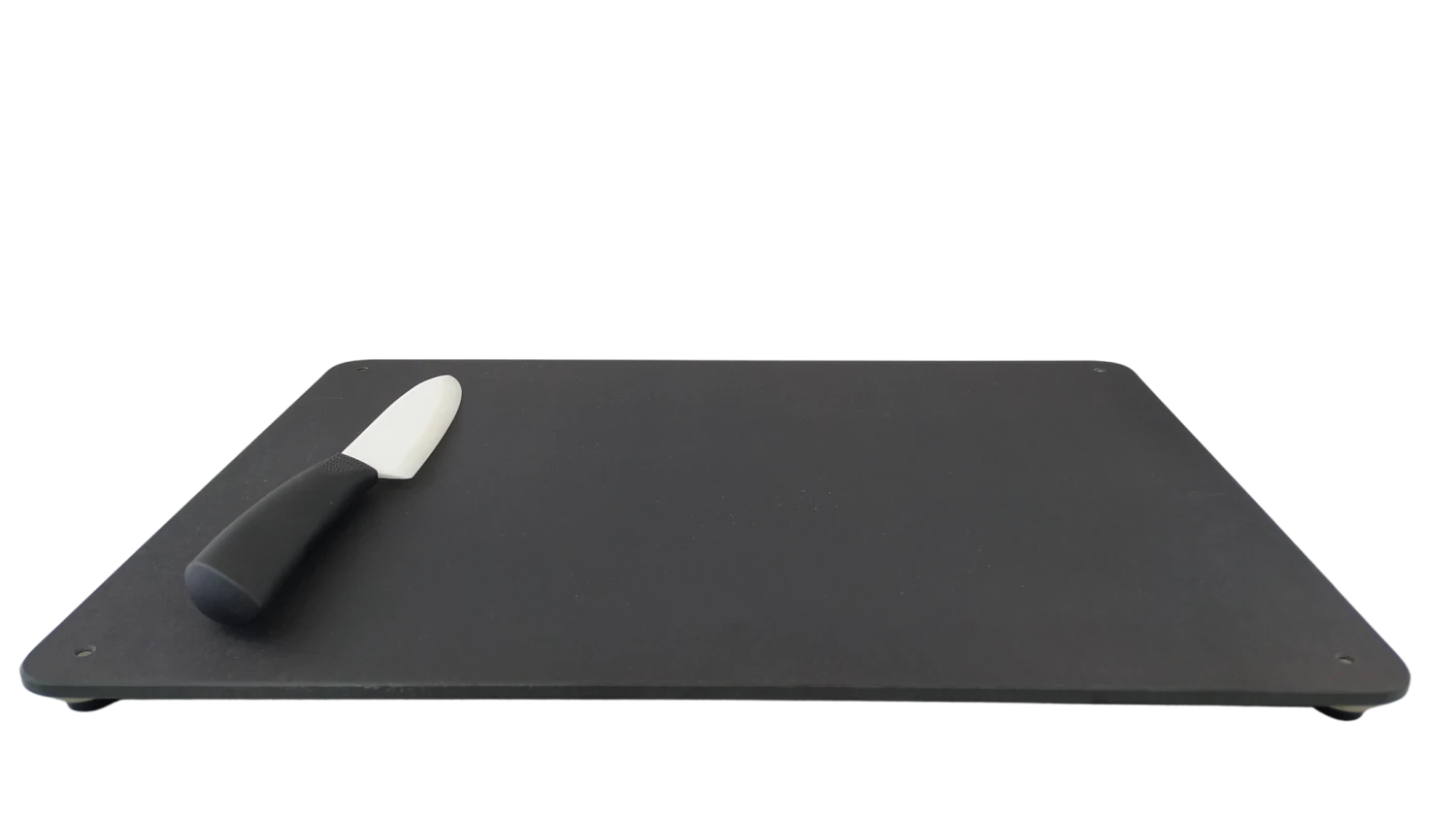 Beidseitig verwendbares Schneidebrett aus sehr leichtem und widerstandsfähigem PaperStone. Eine Seite hat eine Saftrille, die andere ist glatt. Die Schraubfüße aus Edelstahl und Polyurethan sind umschraubbar, sodass Du diese für beide Seiten des Brettes nutzen oder ganz weglassen kannst. (Lieferung ohne das Messer auf den Bildern)