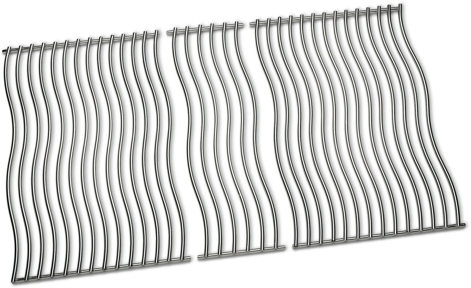 Edelstahlroste mit dem Napoleon-typischen Wave Muster. 6,5 mm starkes Vollmaterial.