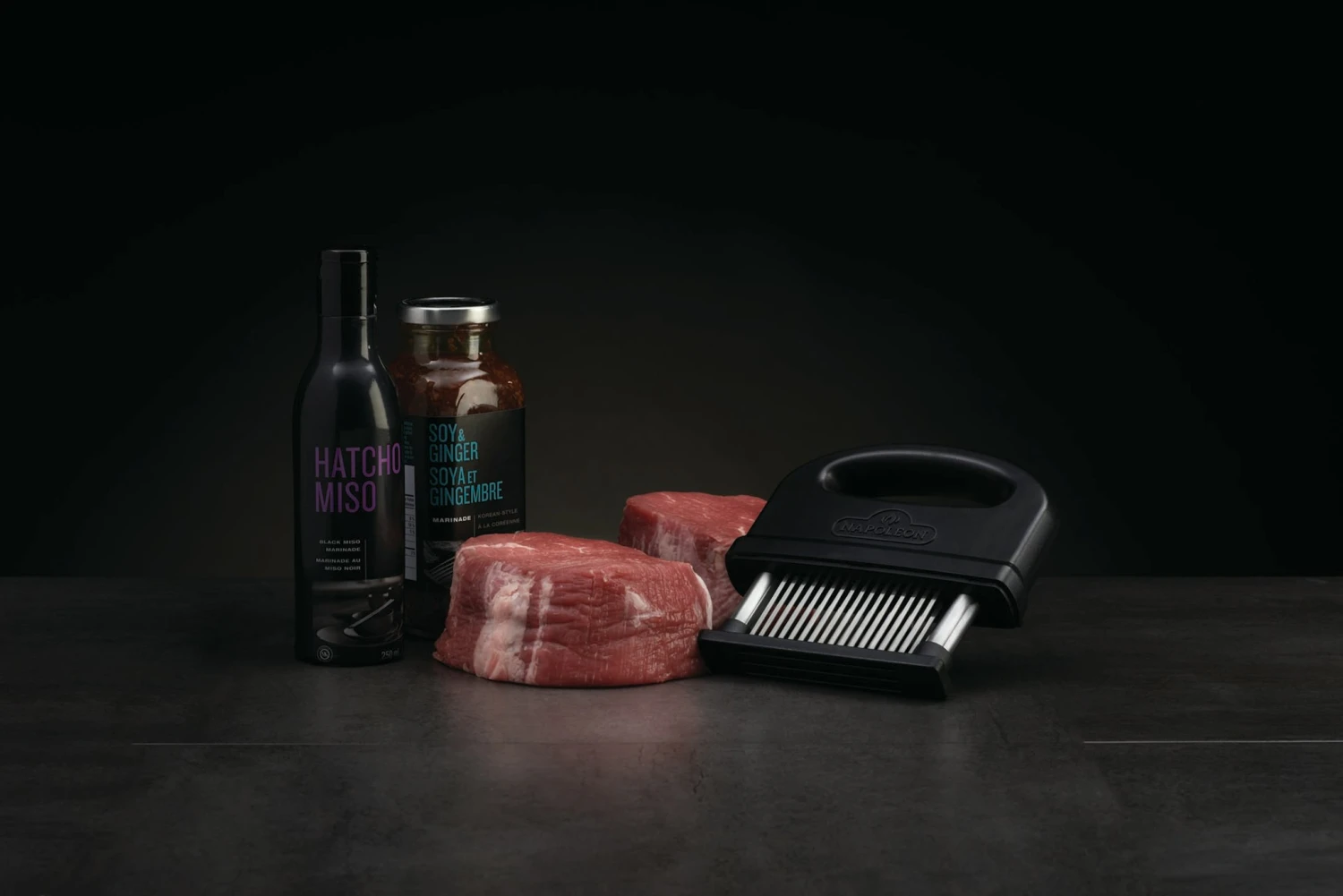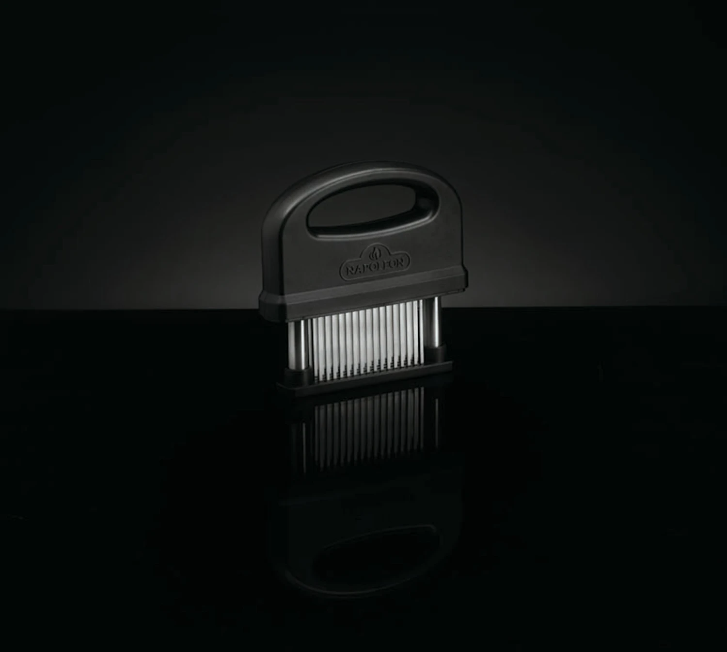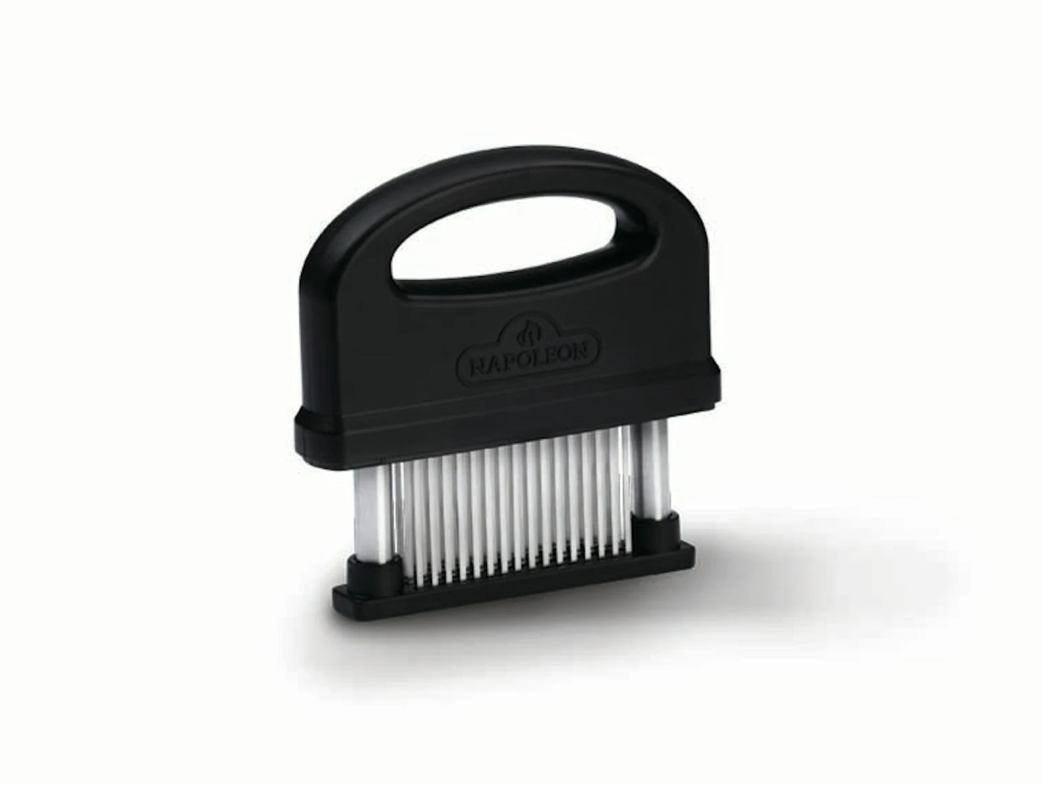 Der NAPOLEON Steaker verfügt über scharfe und widerstandfähige Klingen aus Edelstahl. Diese schneiden in die feste Struktur des Fleisches feine Tasche, damit verringert sich die Grillzeit um ca. 40%. Es gelingt somit die Fleischsäfte zu behalten und ein gleichmäßiges Garen, welches das Fleisch zarter macht, wird gefördert.