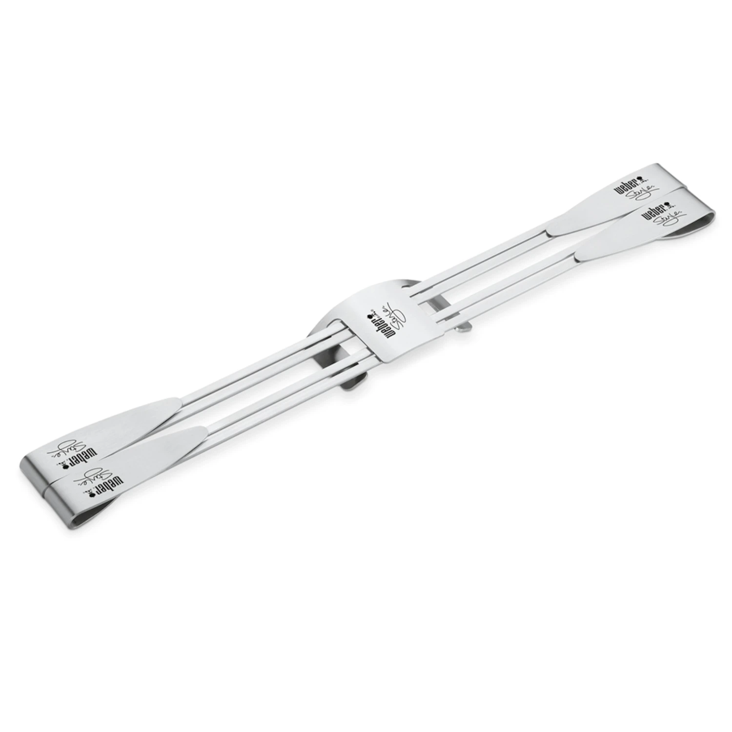 Das Weber Style Spieß-Set aus hochwertigem Edelstahl garantiert schmackhafte Grillergebnisse. Die Spieße lassen viel Raum für Kreativität und bereiten jede Menge Spaß in der Handhabung. Die Spieße sind flexibel einsatzbar für große Fleischstücke oder Gemüse, da sie eine Länge von 45 cm haben. Das Set beinhaltet vier Edelstahl-Spieße und eine Edelstahl-Spießhalterung mit praktischer Abziehfunktion.