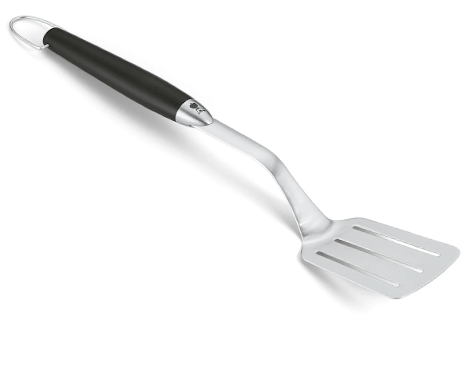 Der Weber Grill-Wender ist aus hochwertigem Premium- Edelstahl gefertigt. Mit dem Grill-Wender lassen sich problemlos auch große Stücke Ihres Grillgutes sicher wenden. Das ist besonders bei Fisch von Vorteil. Das Profizubehör besitzt für ein angenehmeres Handling einen schwarzen Kunststoffgriff.